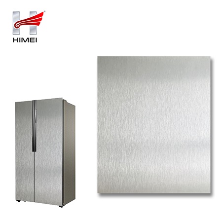 家電用覆膜鋼板,就是鋼板的基材上面覆了一層PET膜/PVC膜,然后通過覆合貼覆而成,主要應用在各類家電外殼裝飾上,例如冰箱、洗衣機、電飯煲等外殼部件。覆膜是一種物理工藝,一層膜一層鋼板經過高溫高壓壓合而成。